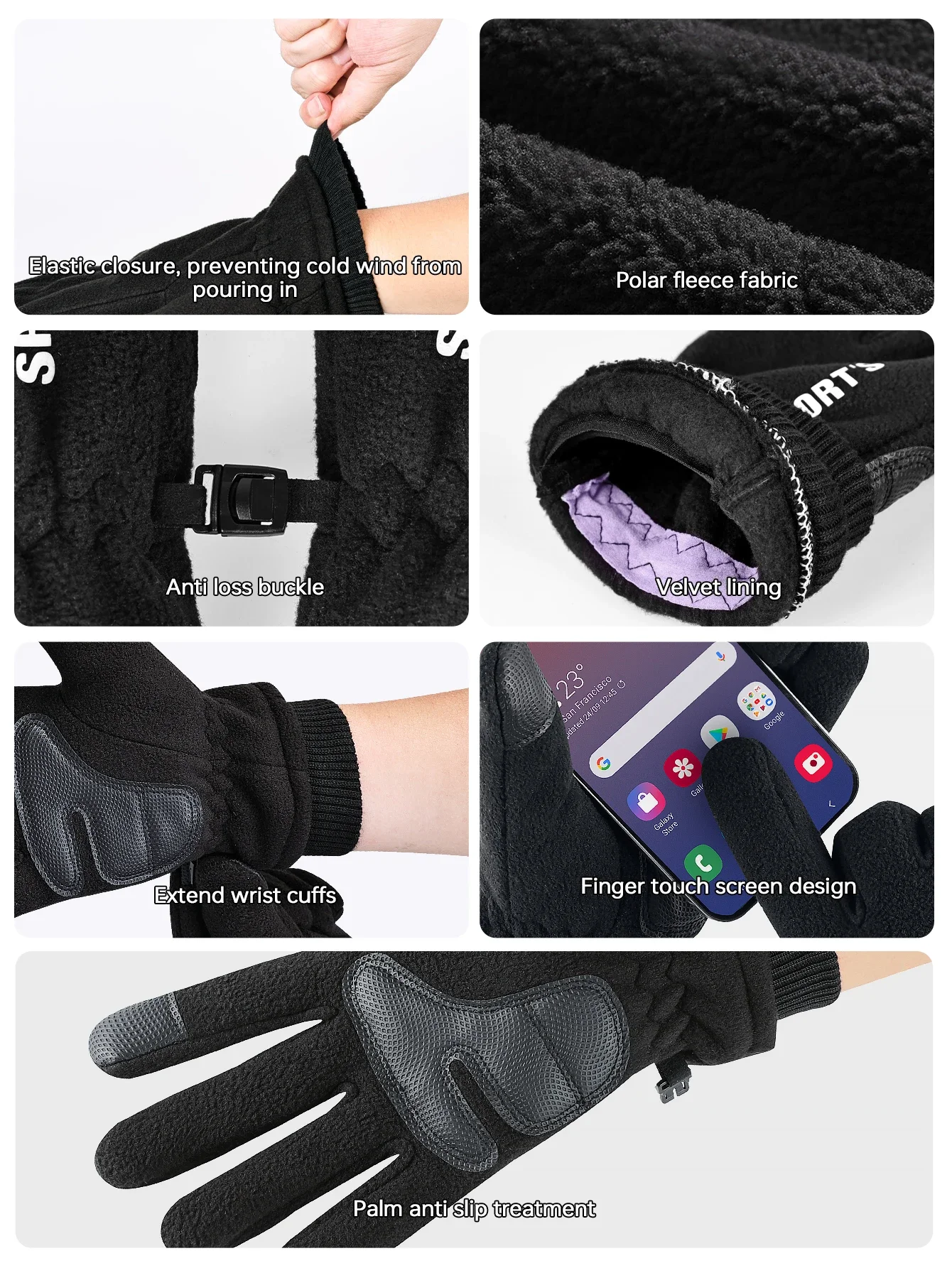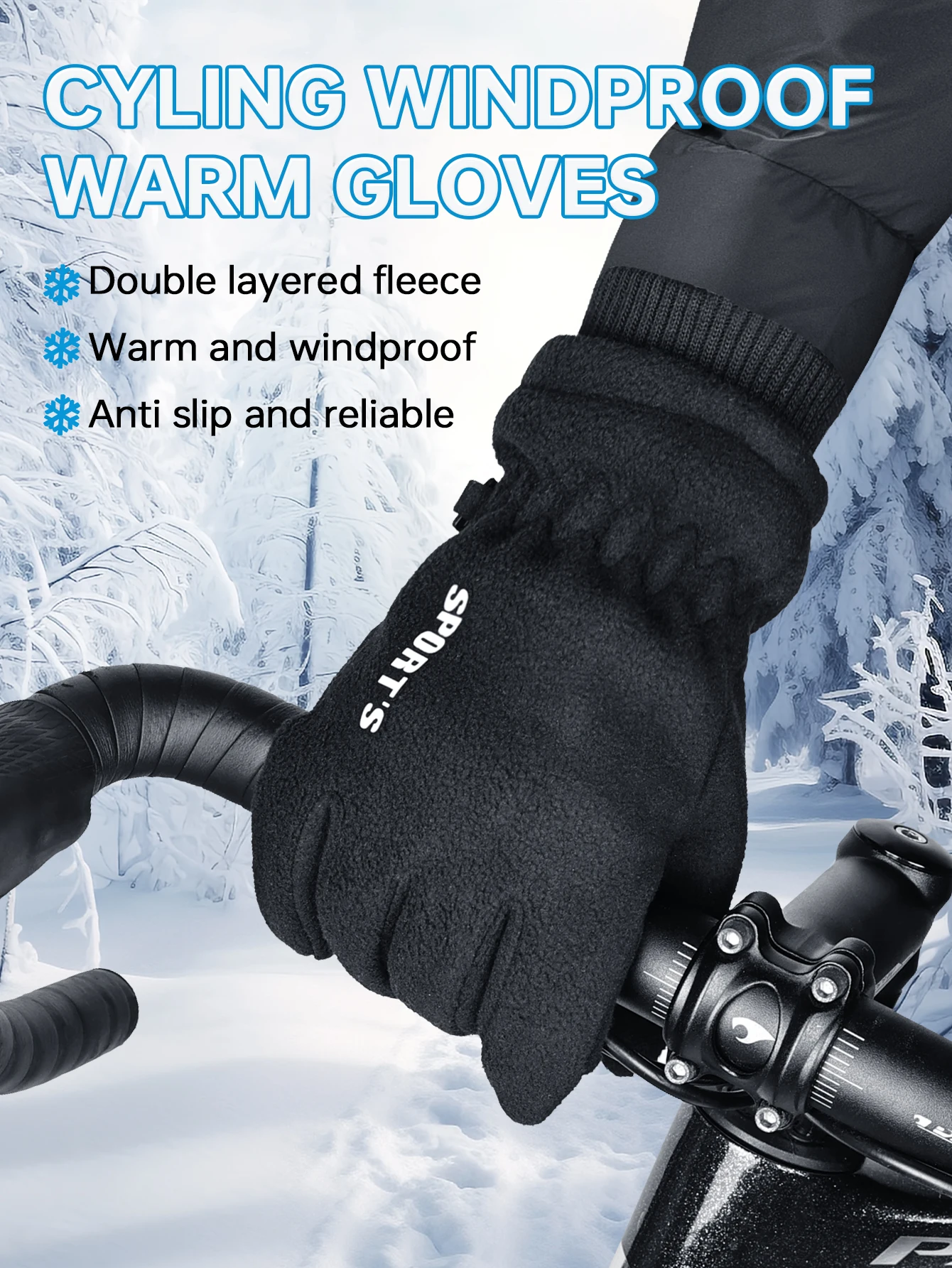 Winter Thermal Cycling Gloves For Men Touch Screen Non-slip Windproof Bicycle Motorcycle Gloves Outdoor Polar Fleece Ski Gloves